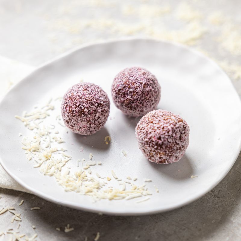 INGREDIENTS: Date, shredded coconut, sunflower seed, almond, cranberry, cherry, coconut oil, coconut sugar, cacao nib, beetroot powder, Himalayan salt.